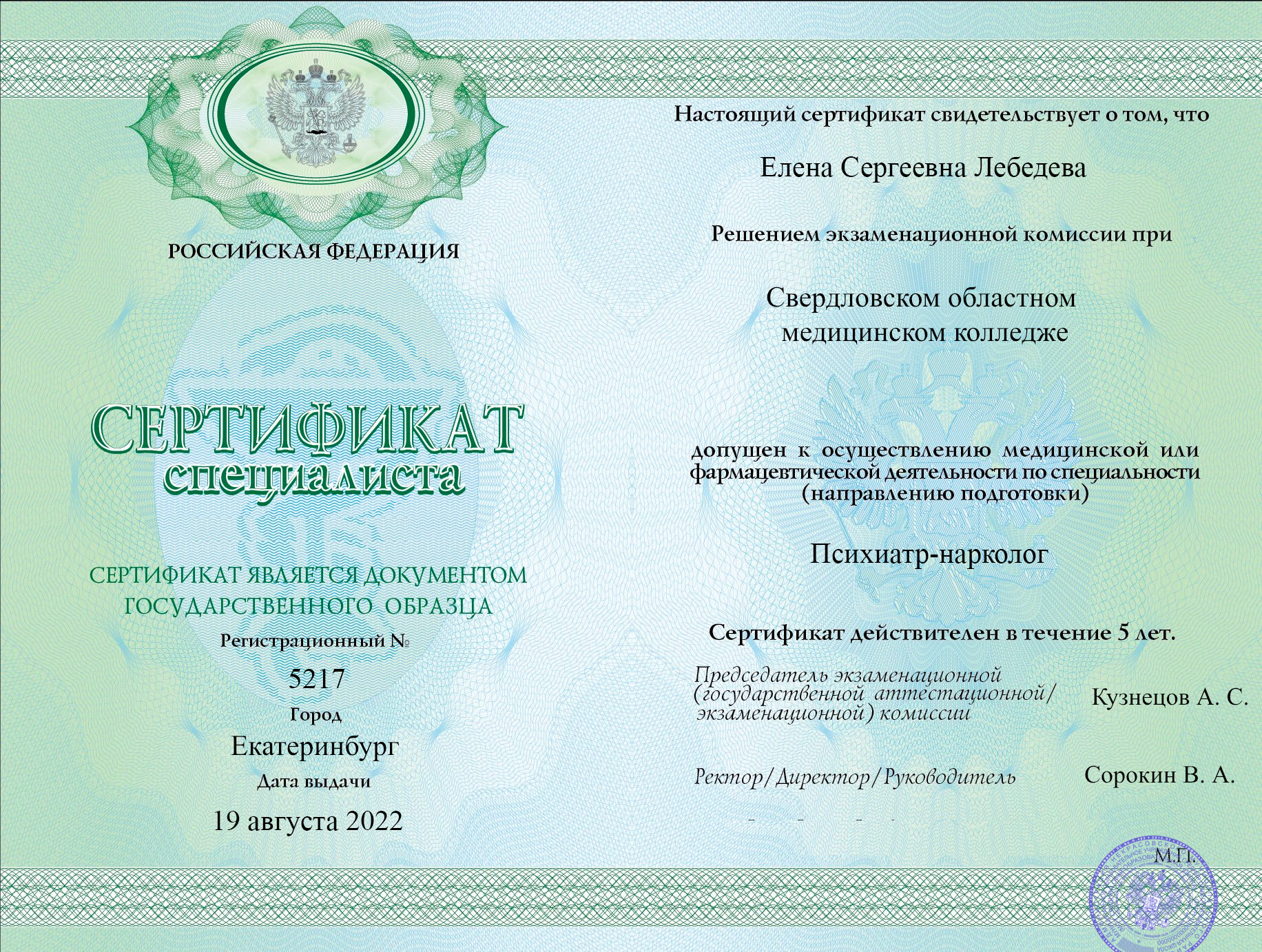 Елена Сергеевна Лебедева врач нарколог клиники доктора Стукаловой в Рамони